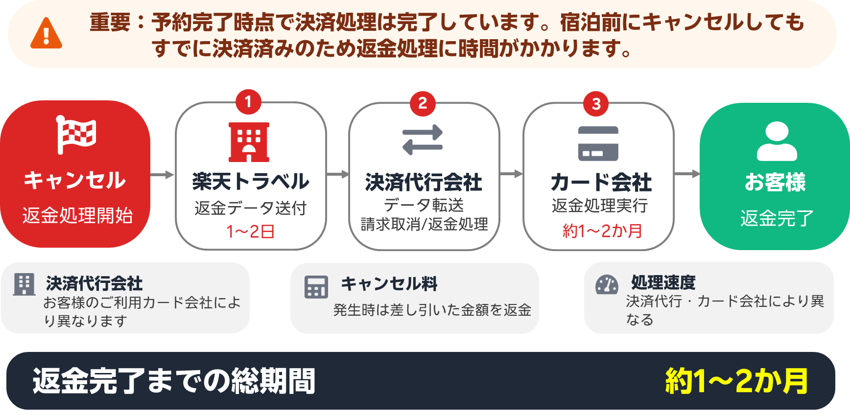 予約のキャンセル・返金 予約のキャンセル方法、クレジットカードの利用条件、支払い方法、返金など