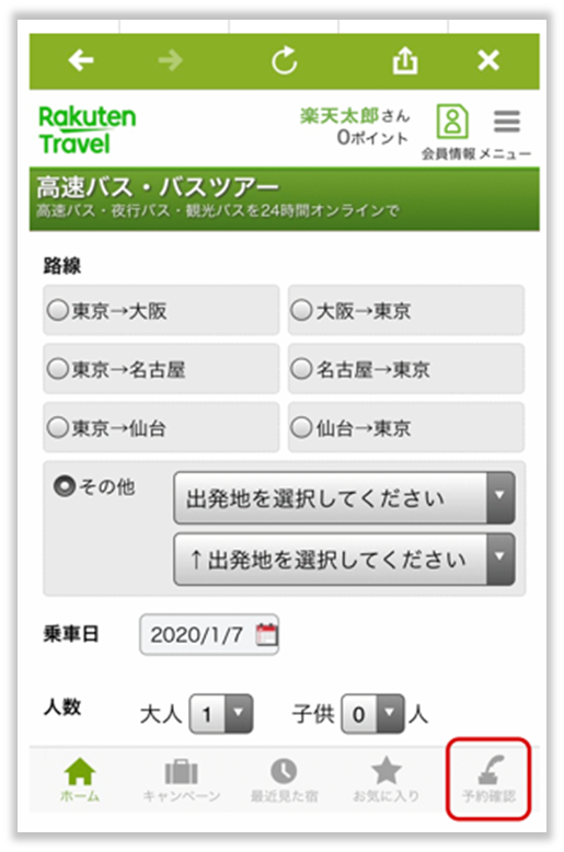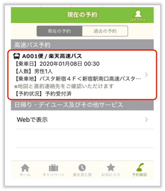 【バス旅行】予約情報が予約確認ページに表示されない
