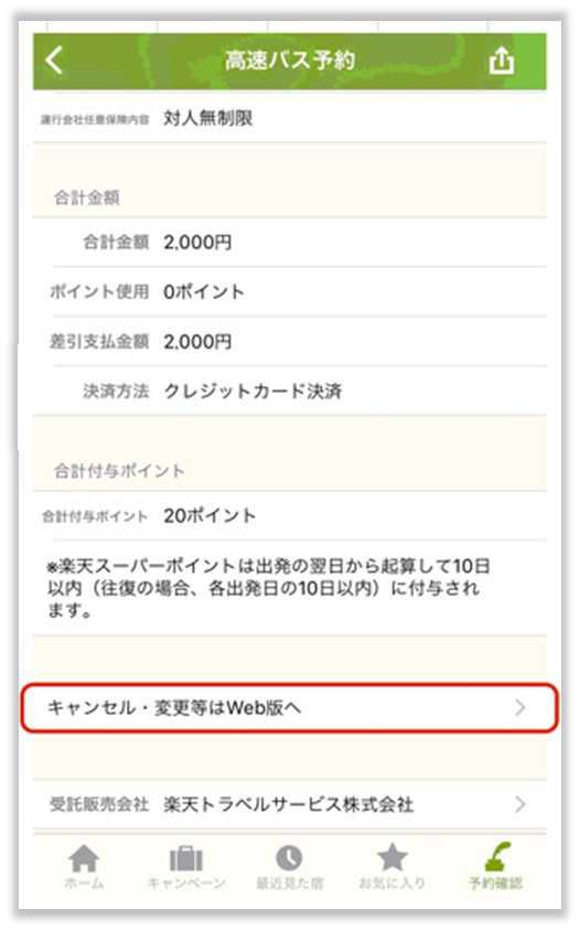・楽天トラベルアプリをご利用の場合、予約詳細から【キャンセル・変更等はWEB版へ】を選択しモバイルサイトへご接続ください。